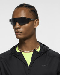 Never let a new environment change how you choose to sport. Introducing the latest edition of the Nike Flyfree stripped down for pure performance. The Nike Flyfree Shield offers a panoramic, single-lens design with the same interchangeable lens options to enhance performance in any environment. The adjustable nose pads and temples are made to provide constant comfort and support. Benefits - Nike Max Pro helps reduce light reflection while repelling water and oil for a clearer view of what's ahead. - Easily customize your eyewear based on how and where you are active with the Nike Mount Interchange System. Swap out your lens to match any light condition, day or night. - 6-base curved lens offers medium coverage with moderate peripheral light blockage - Adjustable nose pads and temples with silicone sleeves provide enhanced grip and optimal fit. Product Details - Injected frame material is derived from at least 40% castor bean oil - Includes extra interchangeable lens - 100% UVA/UVB protection - Frame size: 72mm lens width; 5mm bridge width; 130mm temple length - Shown: Matte Black Anodized - Style: EV24033-010