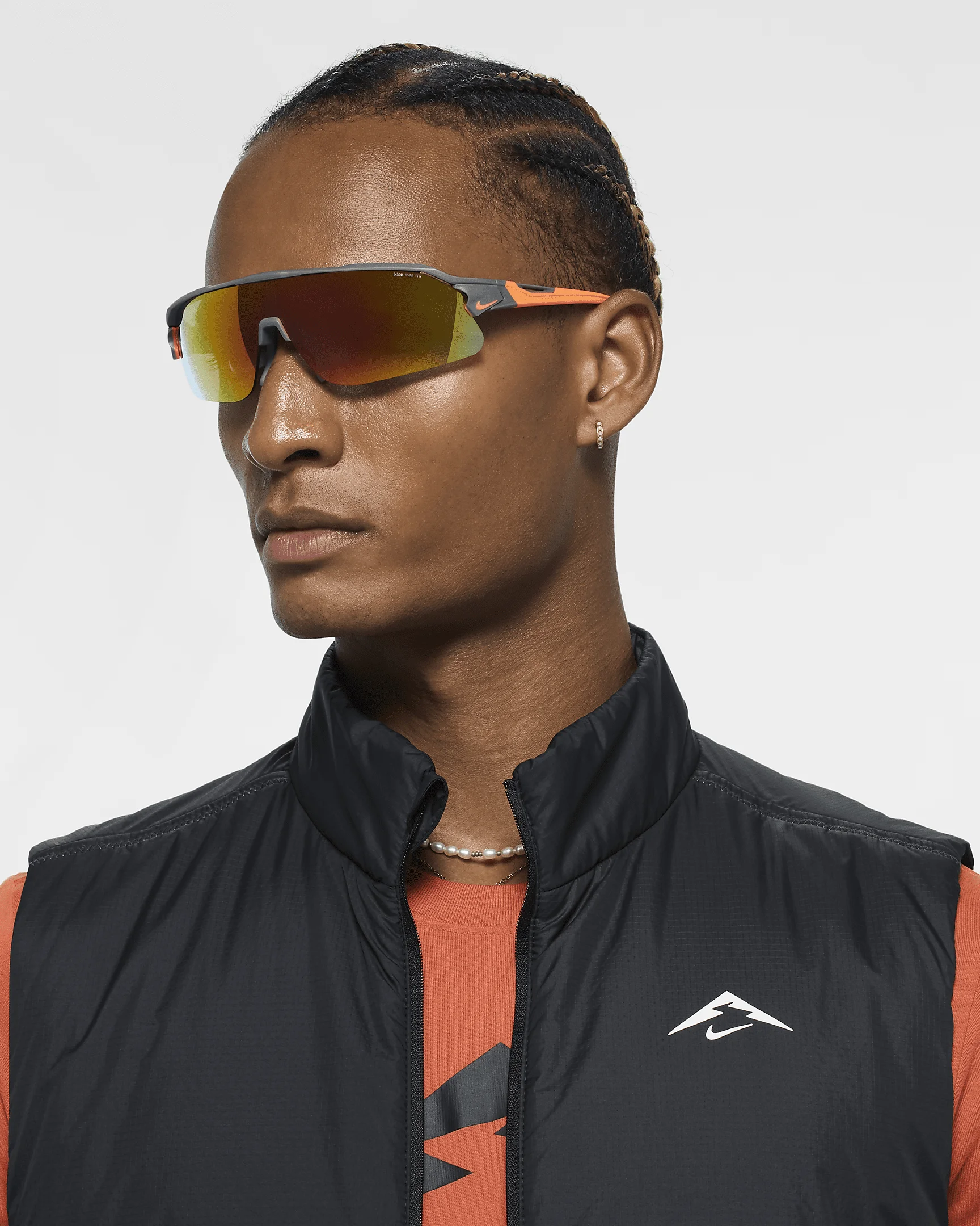 Never let a new environment change how you choose to sport. Introducing the latest edition of the Nike Flyfree stripped down for pure performance. The Nike Flyfree Shield offers a panoramic, single-lens design with the same interchangeable lens options to enhance performance in any environment. The adjustable nose pads and temples are made to provide constant comfort and support. Benefits - Nike Max Pro helps reduce light reflection while repelling water and oil for a clearer view of what's ahead. "065 - Nike Road Tint blocks harsh light on the track and road - 902 - Nike Field Tint mutes bright light while enhancing your ability to track objects" - Easily customize your eyewear based on how and where you are active with the Nike Mount Interchange System. Swap out your lens to match any light condition, day or night. - 6-base curved lens offers medium coverage with moderate peripheral light blockage. - Adjustable nose pads and temples with silicone sleeves provide enhanced grip and optimal fit. Product Details - Injected frame material is derived from at least 40% castor bean oil - Includes extra interchangeable lens - 100% UVA/UVB protection - Frame size: 72mm lens width; 5mm bridge width; 130mm temple length - Shown: Smoke Grey - Style: EV24034-065