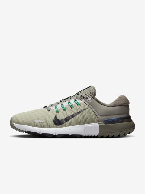 A blast from the past, the Nike Free Golf uses some of our favorite running footwear technology to make it even more functional than before. It's our lowest-to-the-ground golf shoe, offering freedom when you’re on the hoof or housing an approach shot from deep. More Benefits - Wet traction rubber pattern helps keep you upright when in wet conditions. - Tough plastic clip around the heel helps give you stability. Product Details - 1-year waterproof warranty - Cushioned insole - Reflective details - Not intended for use as Personal Protective Equipment (PPE) - Shown: Light Army/Light Silver/Black - Style: FQ7875-300