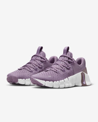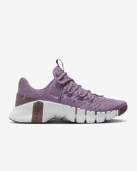When your workouts wade into the nitty gritty, the Nike Free Metcon 5 can meet you in the depths, help you dig deep to find that final ounce of force and come out of the other side on a high. It matches style with substance, forefoot flexibility with backend stability, perfect for flying through a cardio day or enhancing your agility. A revamped upper offers easier entry with a collar made just for your ankle. More Benefits - Molded heel clip offers support. - Webbing eyelets give you a snug, secure fit while also flexing with each step. - Rubber tread in high-wear areas gives you durable traction. Product Details - Not intended for use as Personal Protective Equipment (PPE) - Shown: Violet Dust/Plum Eclipse/Rush Fuchsia - Style: DV3950-500