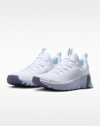 The Free Metcon 6 opens your world of workout possibilities. We added even more forefoot flexibility to our most adaptable trainer and reinforced the heel with extra foam. That means more freedom for dynamic movements during plyos and cardio classes, plus the stable base you need for weights. More Benefits - Multi-surface traction pattern is made for any workout surface and activity. Product Details - Shown: White/Half Blue/Metallic Silver - Style: FJ7126-110