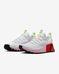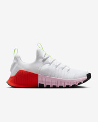 The Free Metcon 6 opens your world of workout possibilities. We added even more forefoot flexibility to our most adaptable trainer and reinforced the heel with extra foam. That means more freedom for dynamic movements during plyometrics and cardio classes, plus the stable base you need for weights. More Benefits - Multi-surface traction pattern is made for any workout surface and activity. - Comfortable inner sleeve increases ankle support and provides more seamless fit. Product Details - Shown: White/Barely Volt/Bright Crimson/Pink Foam - Style: IB4526-100