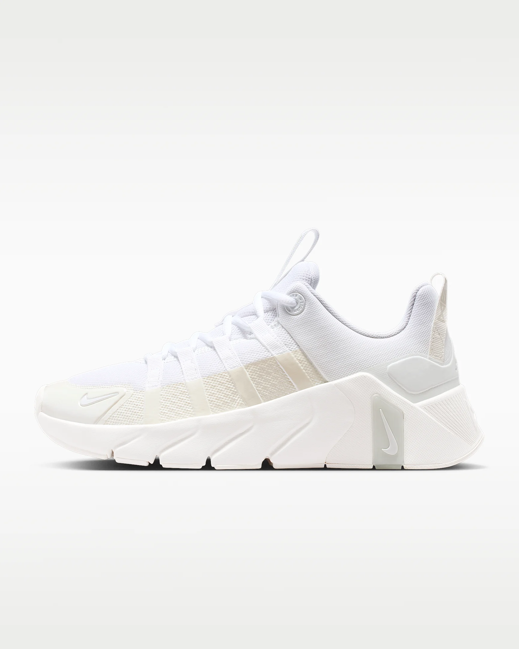 Flex your performance in the Free Metcon 7. Our most versatile training shoe gets updated with enhanced midfoot containment. Of course, we kept our famed Nike Free technology for a quick and powerful feel. The flexible forefoot and stable heel easily let you switch from dynamic to strength-based movements. More Benefits - Webbed lacing and a midfoot containment system replace Flywire cables - Added extra durability around the toe tip and the side of the shoe for support Product Details - Shown: White/Sail/Photon Dust/White - Style: II7406-101