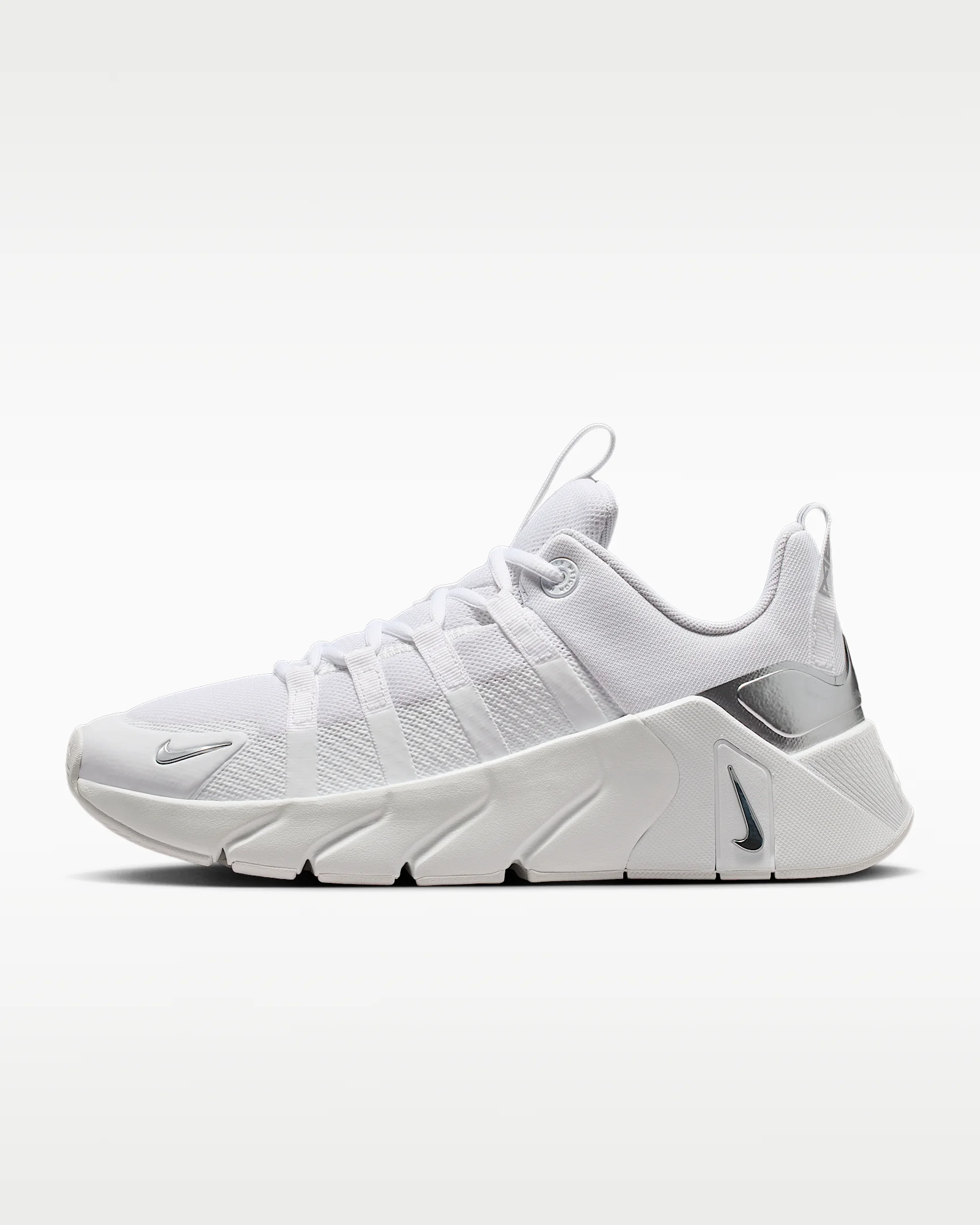Flex your performance in the Free Metcon 7. Our most versatile training shoe gets updated with enhanced midfoot containment. Of course, we kept our famed Nike Free technology for a quick and powerful feel. The flexible forefoot and stable heel easily let you switch from dynamic to strength-based movements. More Benefits - Webbed lacing and a midfoot containment system replace Flywire cables - Added extra durability around the toe tip and the side of the shoe for support Product Details - Shown: White/White/Metallic Silver - Style: II7406-102