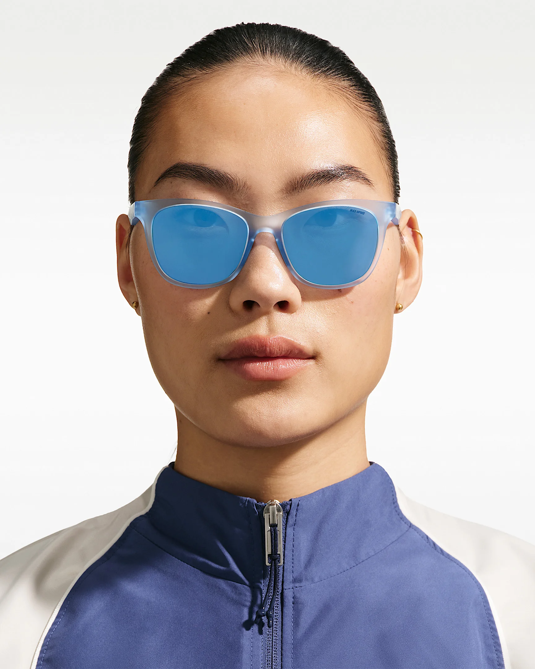 With sport-inspired lines and an everyday fit, the Nike Fusion Flow is durable, balanced, and made to look good without trying too hard. An easy to wear pair that goes with the flow, whether in the gym, on the go, or just through the daily rituals of life. Benefits - Frame size: 52mm lens width; 17mm bridge width; 140mm temple length - Nike Max Optics provide precise vision from all angles. - 4-base shield and slim profile provide everyday coverage. - Soft, injected rubber inlay nose pads and temples provide stability and grip. Product Details - Injected frame material is derived from at least 40% castor bean oil - Prescription-friendly frame. - 100% UVA/UVB protection. - Shown: Light Armory Blue/Blue - Style: IQ9345X-444