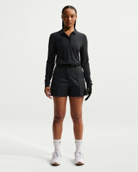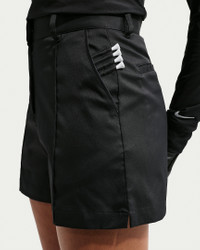 Classic lines and crisp pin tuck detailing give these sweat-wicking shorts a clean look ready for your next round. Golf-specific detailing helps keep the essentials organized so you can focus on your game. Benefits - Nike Dri-FIT technology moves sweat away from your skin for quicker evaporation, helping you stay dry and comfortable. - Woven fabric wicks sweat and stretches as you take your swing. - Specially designed golf tee storage in the side pocket. Product Details - Front and back pockets - 5" inseam - Snap and zipper closure - Belt loops - Hem vents - Embroidered Swoosh logo - Body: 92% polyester/8% spandex. Pocket Bags: 100% polyester. - Machine Wash - Imported - Shown: Black/Sail - Style: IF5976-010 SIZE & FIT Model is wearing size 2 and is 5′7″170cm Standard fit: easy and traditional