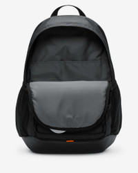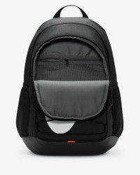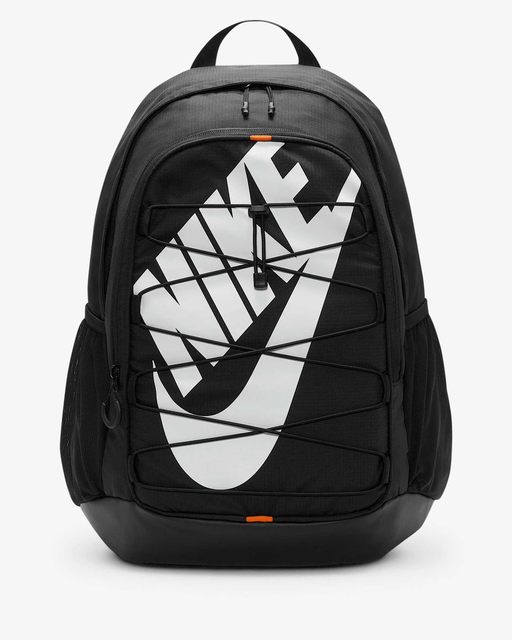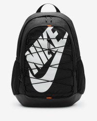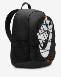 Leave no gear behind with the Nike Hayward Backpack. A front bungee system, two external zipped pockets and a laptop sleeve provide plenty of storage, while a chest strap and padded shoulder straps help optimize comfort for your haul. Benefits - Internal sleeve stores a laptop up to 15". - Padded shoulder straps are adjustable for a comfortable fit. - Side pockets hold a water bottle or other small essentials. - Densely woven polyester provides heavyweight support. Product Details - 13" W x 19" H x 9" D - Haul handle - 100% polyester - Spot clean - Imported - Shown: Black/Black/White - Style: HJ8200-010