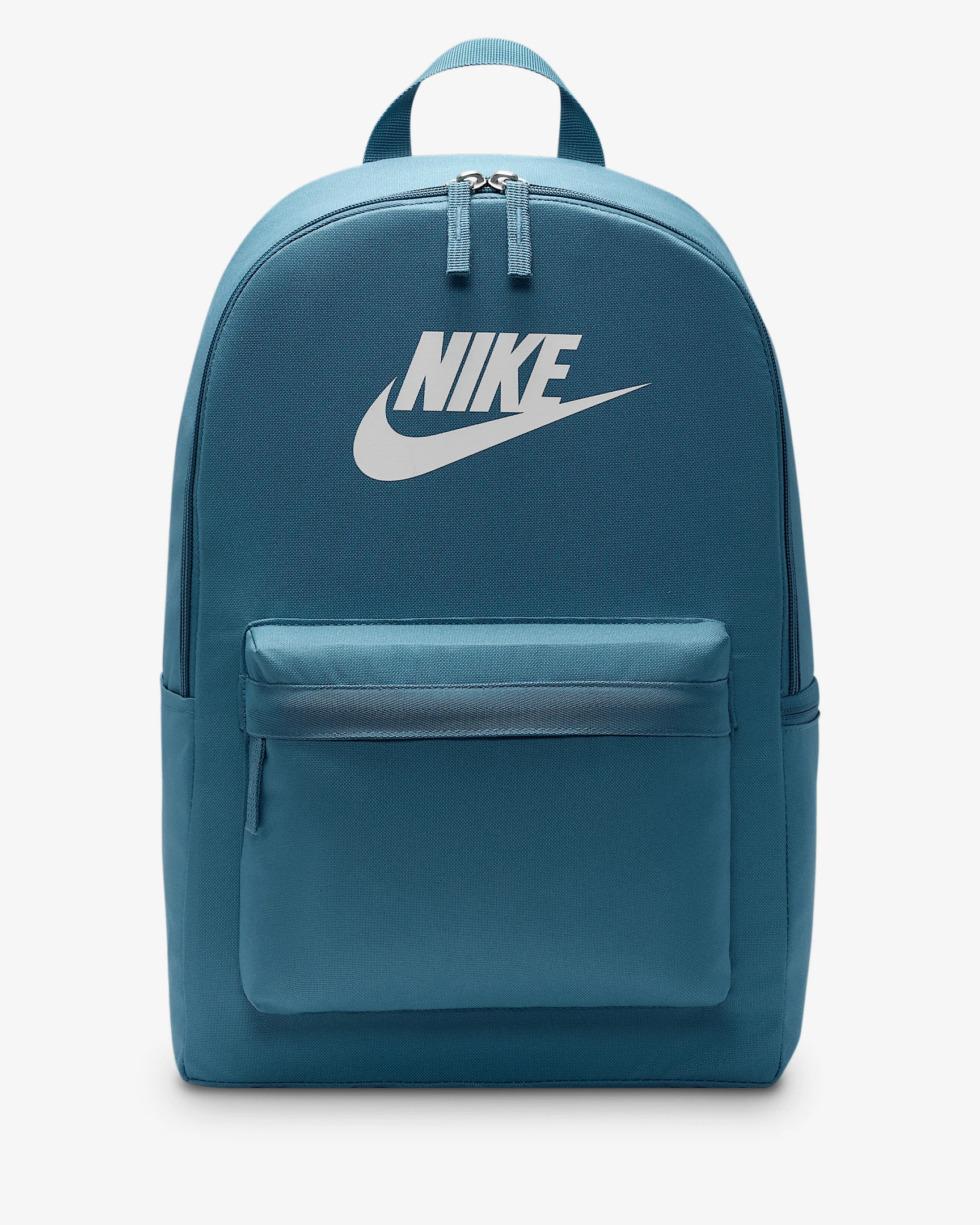 Take your gear to go with the Nike Heritage Backpack. Its spacious main compartment features a sleeve that holds up to a 15" laptop, so your computer is never out of reach. 2 zippered accessories pockets help keep your gear organized and easy to grab. This product is made with at least 65% recycled polyester fibers. Benefits - The extra zipper compartments help keep you organized, add convenience and secure your keys, wallet and phone. - Densely woven polyester provides heavyweight support. - The shoulder straps and back are padded for extra comfort. Product Details - Haul handle - 17" H x 12" W x 6" D - 25 L - 100% polyester - Spot clean - Imported - Shown: Smokey Blue/Smokey Blue/Summit White - Style: DC4244-006