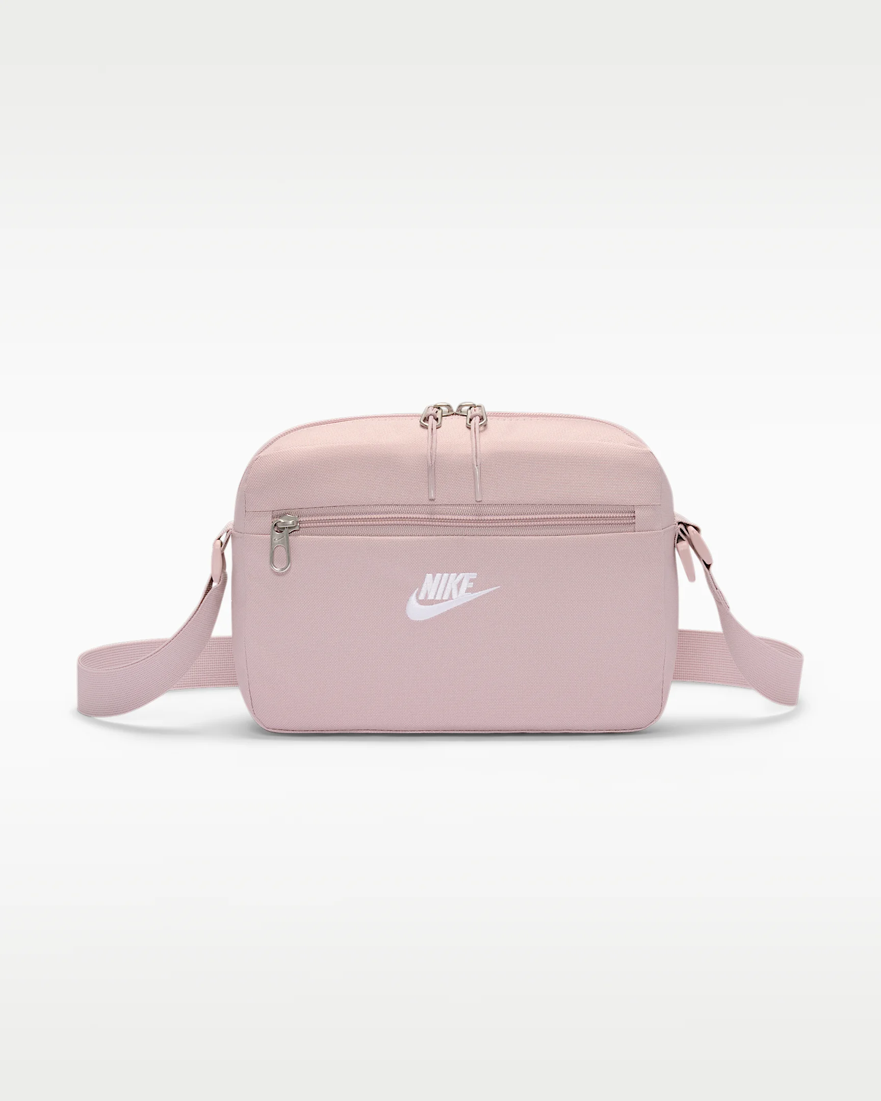 Updated design lines revive this classic. The Nike Heritage Crossbody bag has a main storage compartment and accessory pocket to help keep you organized. Plus, we added a hardware ring for utility. Its easy-to-adjust strap lets you wear it comfortably across your chest. Product Details - Embroidered logo - Soft zipper pull - 9"L x 3"W x 7"H - Body: 100% polyester. Lining: 100% polyester. - Spot clean - Imported - Shown: Particle Rose/Particle Rose/White - Style: IB4378-627