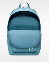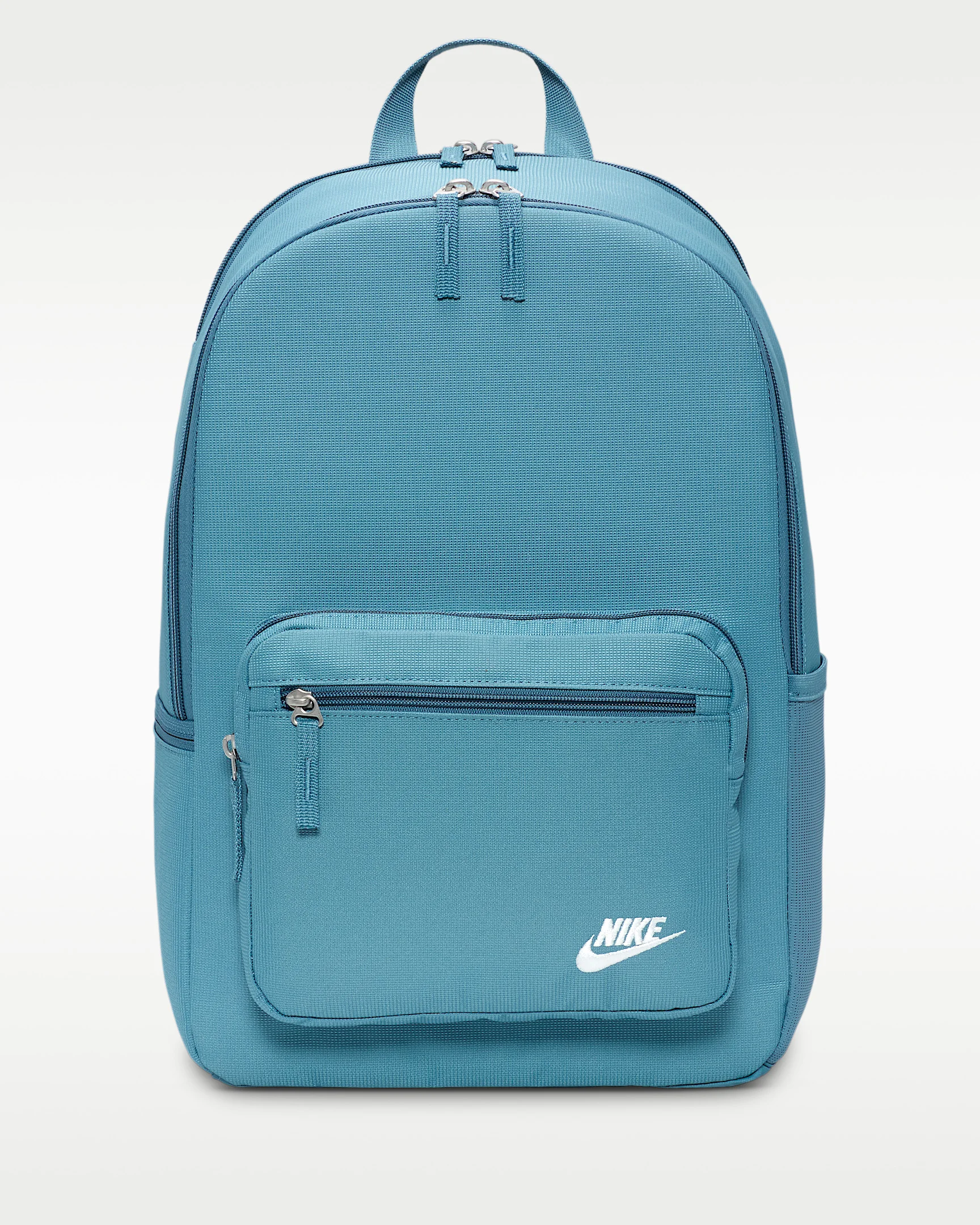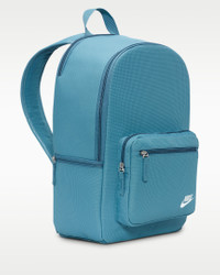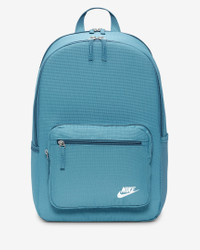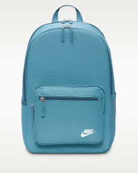 Ready to take work or school, the Nike Sportswear Heritage Backpack updates a classic look with smart storage options to keep your electronics stored securely. An internal padded sleeve provides quick access to your laptop while front and side accessories pockets help keep your cords, calculator and phone organized and easy to find. Padded shoulder straps and an easy carry haul loop make it easy to grab your gear and go. Benefits - Densely woven polyester provides heavyweight support. - Water-resistant coating helps keep your gear dry. - Side pocket holds water bottle upright during carry. - Internal padded sleeve can store up to a 15" laptop. - Zippered main compartment offers room for your gear. - Zippered front pouch provides small-item storage. - Shoulder straps and back panel are padded for comfortable carrying. Product Details - Dimensions: 18" H x 12" W x 6" D - 23L - Haul loop - 100% polyester - Spot clean - Imported - Shown: Smokey Blue/Smokey Blue/Summit White - Style: DB3300-006