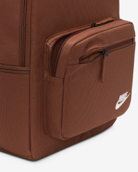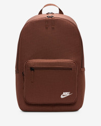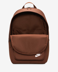 Ready to take work or school, the Nike Sportswear Heritage Backpack updates a classic look with smart storage options to keep your electronics stored securely. An internal padded sleeve provides quick access to your laptop while front and side accessories pockets help keep your cords, calculator and phone organized and easy to find. Padded shoulder straps and an easy carry haul loop make it easy to grab your gear and go. Benefits - Densely woven polyester provides heavyweight support. - Water-resistant coating helps keep your gear dry. - Side pocket holds water bottle upright during carry. - Internal padded sleeve can store up to a 15" laptop. - Zippered main compartment offers room for your gear. - Zippered front pouch provides small-item storage. - Shoulder straps and back panel are padded for comfortable carrying. Product Details - Dimensions: 18" H x 12" W x 6" D - 23L - Haul loop - 100% polyester - Spot clean - Imported - Shown: Fauna Brown/Fauna Brown/Summit White - Style: DB3300-265