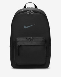 Keep the cold at bay with the Nike Heritage Backpack. Reinforced panels help protect your gear from the elements and oversized zipper pulls provide easy access so you can keep moving when it feels like the world is frozen solid. Benefits - An internal sleeve can store up to a 15" laptop. - Oversized zipper pulls are easy to grab when wearing gloves. - Soft mesh lines the back for extra breathability when layering up. - Densely woven polyester fabric provides heavyweight support. - The back panel and shoulder straps are padded for comfort. Product Details - 18" H X 12" W X 6" D - 23L - 100% polyester - Spot clean - Imported - Shown: Black/Black/Smoke Grey - Style: DN3592-010