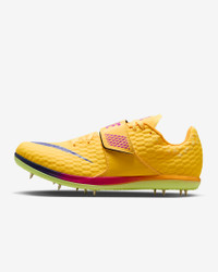 The Nike High Jump Elite gives you the support and stability you need for training and competitions. The plate design gives you the right amount of stiffness for a better push-off. Product Details - World Athletics approved - Cushioned sockliner - Shown: Citron Pulse/Mega Blue/Vivid Purple/Indigo Burst - Style: FZ9636-800