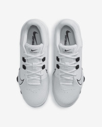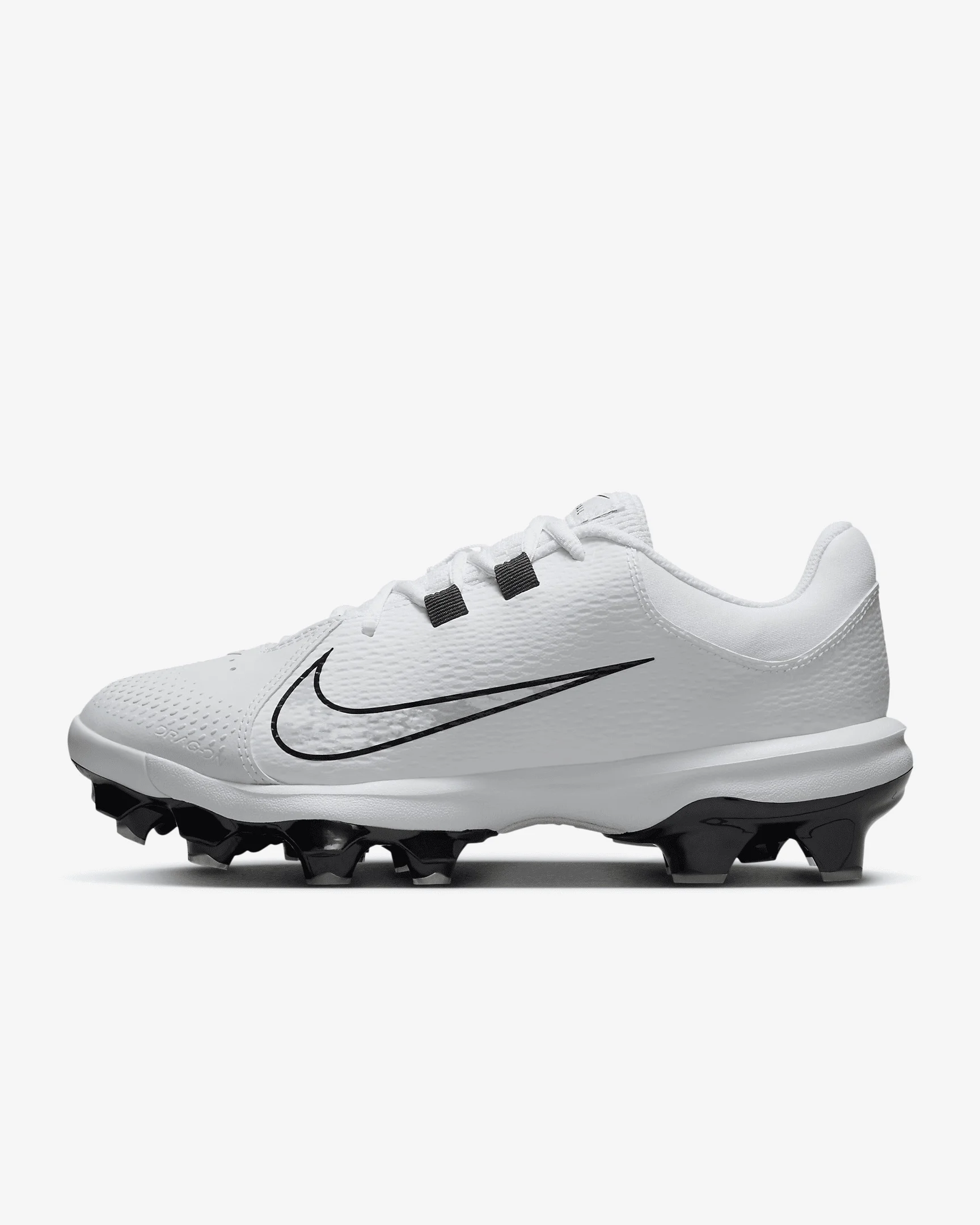 Be quick between the bases in the Nike Hyperdiamond 4 Pro MCS. A flexible plate with molded studs gives you optimal traction to help beat the relay throw just in time. Benefits - Synthetic leather on the upper with molded details adds durability. - Thick material that wraps around the heel provides durability. - Molded studs give you traction. Product Details - Shown: White/Pure Platinum/Black - Style: FZ0921-102
