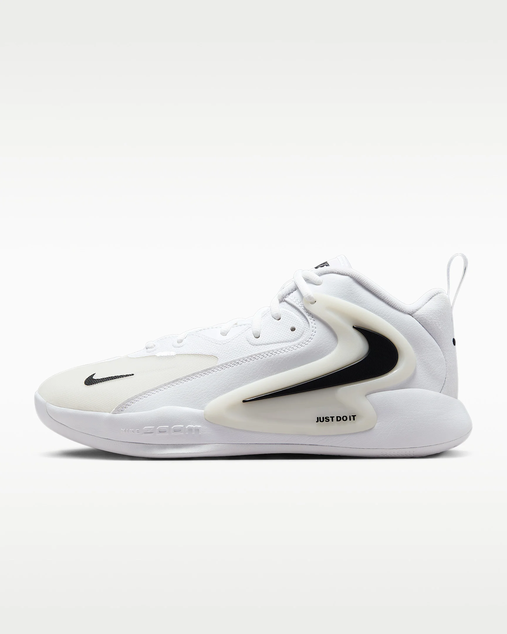 When the action heats up, stay in the middle of the fray with the Hyperset 2. A forefoot Air Zoom unit offers a unique pop when sprinting into position. You can attack at hyper speed without sacrificing comfort thanks to a foam midsole and lacing that helps keep you secure. Benefits - Snappy and responsive, Air Zoom cushioning helps provide a quick-off-the-ground sensation. - Mesh and synthetic leather with durable overlays offer breathable support. - Multidirectional traction gives you grip for netball, volleyball, badminton and other sports played on indoor courts. Product Details - Pull loops at heel and tongue - Rubber sole - Shown: White/Black/White - Style: FQ7070-101