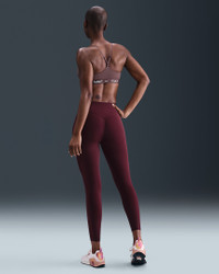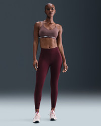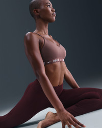 Don't let anything get in the way of expressing yourself in this sleek, low-profile sports bra. Its light support gives you a gentle hold with plenty of freedom that's great for low-impact workouts or all-day comfort. Smooth, quick-drying fabric gives the bra a clean finish so you can wear it your way. More Benefits - Nike Dri-FIT technology moves sweat away from your skin for quicker evaporation, helping you stay dry and comfortable. - Soft jacquard chest band sits snugly against your skin without pinching or binding. Product Details - Body: 78-79% polyester/21-22% spandex. Bottom hem: 53% polyester/28% nylon/19% spandex. Straps: 52% polyester/32% spandex/16% nylon. Lining: 84% polyester/16% spandex. Interlining: 80% polyester/20% spandex. Pad top fabric/Pad back fabric: 100% polyester. Pad: 100% polyurethane. - Machine wash - Imported - Shown: Tattoo/Tattoo/White - Style: FD1062-502 SIZE & FIT Model is wearing size M and is 5'11"180cm Tight fit: snug and form-fitting Light support: feels ke a soft hug with plenty of freedom
