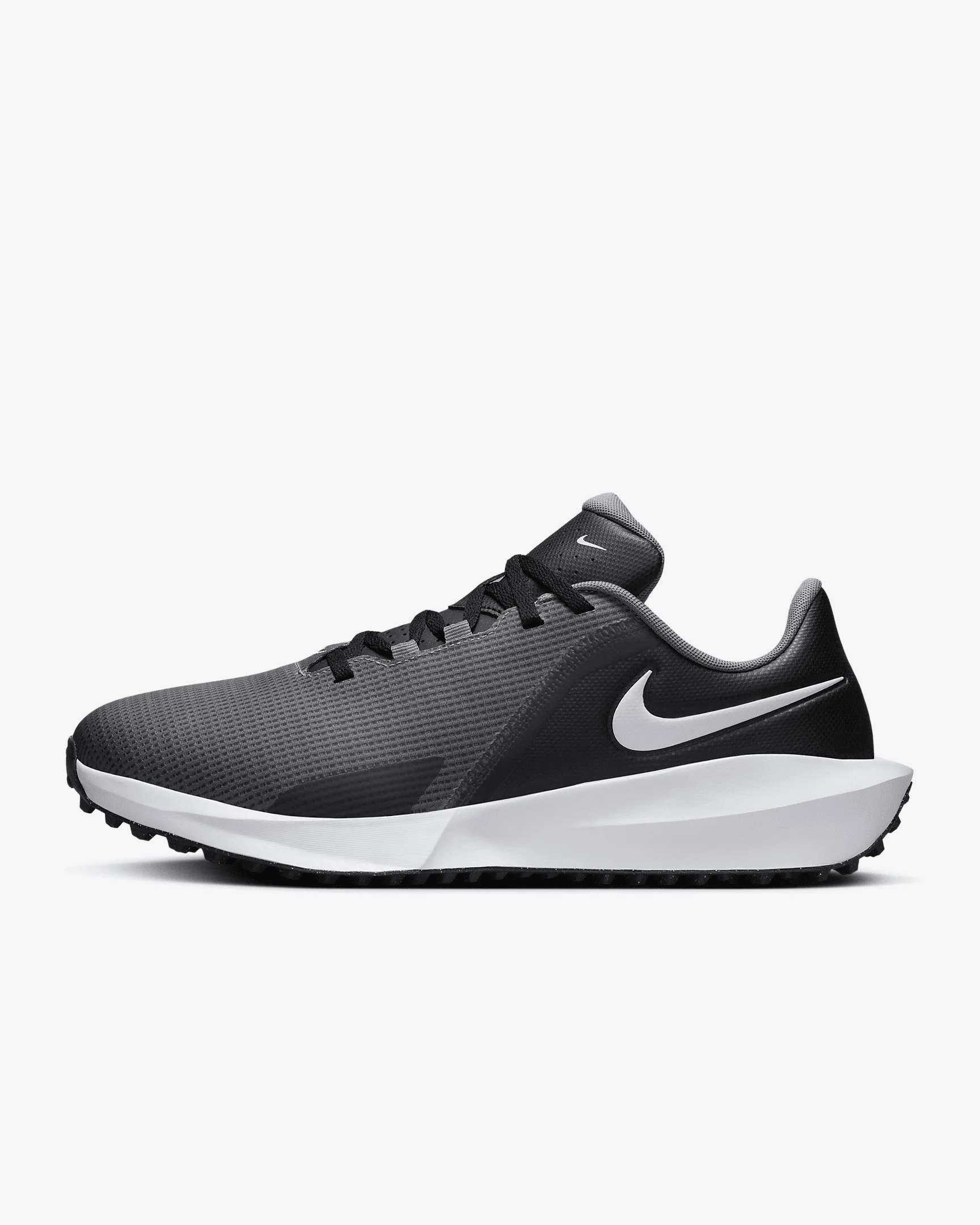 Give your on-course athleticism the full green light in the Infinity G NN. These shoes are perfect for today’s game: sleek and fast. Its running-shoe inspired build can help you uncoil your backswing or uncork a chip from the rough to green. Plus, a revamped outsole pattern is ideal for wet weather. Benefits - Water-repellent finish helps keep you dry in wet weather. - Waffle-inspired pattern on the outsole has wet traction rubber, offering great grip in rough conditions and rainy weather. - Lightweight foam in the midsole offers stable, responsive comfort. Product Details - Shown: Black/Smoke Grey/White - Style: FN0565-001