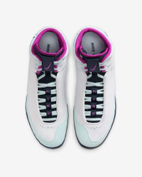Plant your opponent into the mat and climb to the top of the podium in the Nike Inflict 4. It offers a little bit of everything: comfort, durability and flexibility all while maintaining a lightweight design. Its mobile, breathable and comes with a hook-and-loop strap that helps keep your laces tied. Product Details - Breathable mesh on upper - Rubber outsole - Shown: White/Glacier Blue/Obsidian/Hyper Violet - Style: HM9674-103