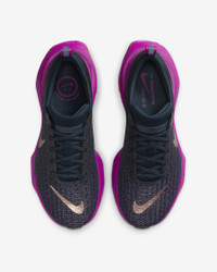 Maximum cushioning provides our most comfortable ride for everyday runs. Experience a breathable Flyknit upper and the robust platform of lightweight ZoomX foam that softens impact. Plus, the midsole of this model is wider and taller than the last for even more cushioned comfort. Benefits - Breathable Flyknit upper for a secure fit without bulk - High and wide ZoomX foam midsole cushions on impact - Waffle outsole for durable traction - Extra cushioning around contact points around the heel and tongue - What’s New? A wider and taller ZoomX foam midsole for maximum comfort and sleek all-around design updates. Product Details - Weight: Approx. 258g (Women’s size 8) - Heel-to-toe drop: 9mm - Not intended for use as Personal Protective Equipment (PPE) - Shown: Armory Navy/Vivid Grape/Hot Fuchsia/Metallic Red Bronze - Style: DR2660-404