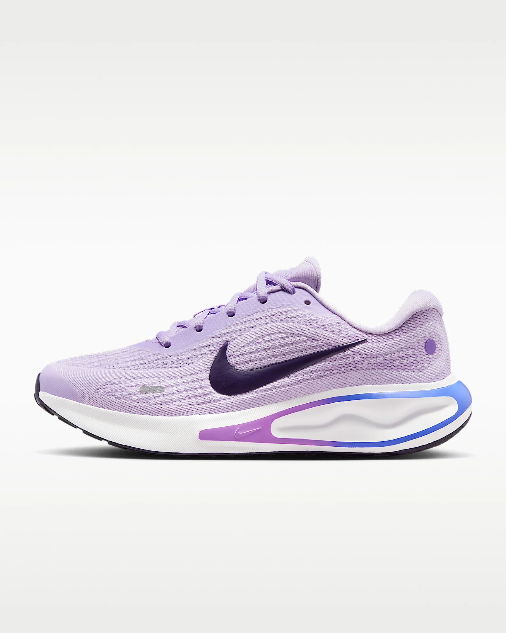 Enjoy every step, route and jaunt in the Nike Journey Run. It’ll have you striding and smiling on punishing pavements, thanks to extra-high foam stacks and supersoft cushioning. It's so comfy that you'll already be looking forward to lacing 'em up again. Product Details - Reflective details - Not intended for use as Personal Protective Equipment (PPE) - Shown: Violet Mist/White/Bright Violet/Purple Dynasty - Style: FJ7765-500