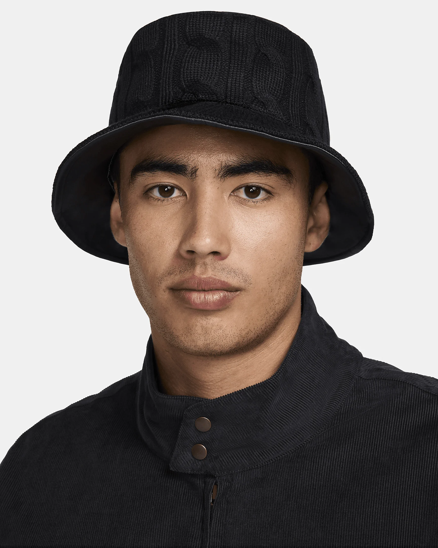 This reversible Apex bucket has a casual vibe with 2 very different looks. One side features soft, thick yarn in a classic cable-knit sweater pattern. The reverse side is made with a smooth woven fabric with a satin-like sheen. Benefits - Apex bucket hats all have a mid depth and 360-degree coverage. - The sweater side features an embroidered Swoosh logo on the top. - The satin side has a mesh-like embroidered Swoosh logo on the center front. Product Details - 100% Polyester - Hand wash - Imported - Shown: Black/Anthracite - Style: FN9896-010