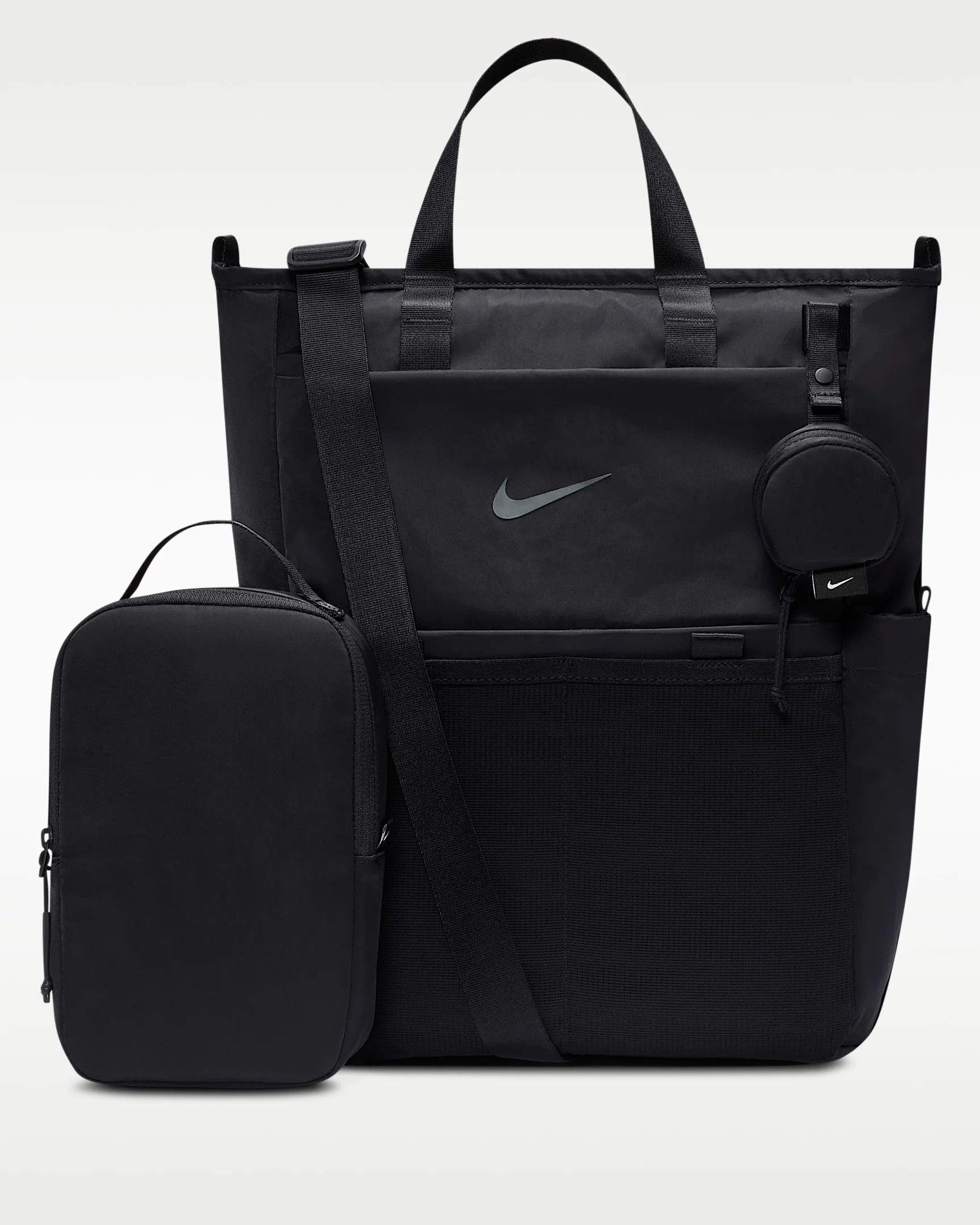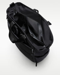 The Nike (M) diaper bag is designed for modern families on the go. Like the original, this bag can be worn as a backpack, shoulder bag or carried like a tote and has a ton of organization compartments. We upgraded this version to include a padded changing mat, padded shoulder straps with stroller buckles and a luggage sleeve. More Benefits - Easy-to-clean lining inside helps keep things fresh. - Removable and adjustable shoulder strap lets you find a comfortable fit across your chest. Product Details - 11"W x 17"H x 6"D - Body: 100% nylon. Lining: 54% ethylene vinyl acetate (EVA)/45% polyethylene terephthalate (PET)/1% aluminum. Packing cubes: 100% nylon. Lining: 54% EVA/45% polyethylene terephthalate (PET)/1% aluminum. Binky pouch: Body: 100% nylon. Lining: 100% polyester. Changing Mat: 100% nylon. - Spot clean - Imported - Shown: Black/Black/Anthracite - Style: IB1889-010