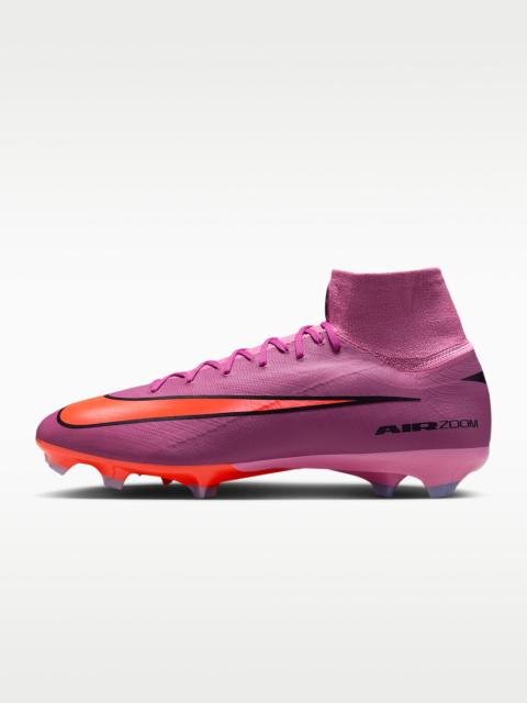 Serious about your speed? Pro cleats are for those who want to push the pace all match long. That's why we made the Superfly 10 with an improved Air Zoom unit. It gives you and those devoted to the game the propulsive feel needed to break through the back line. Take your skills to the next level with some of Nike’s greatest innovations like Flyknit on the upper, which makes the cleat even lighter so you can play fast. Product Details - For use on slightly wet, short-grass fields - Cushioned insole - Shown: Racer Blue/White - Style: HF9433-446 SIZE & FIT Contoured: designed for a contoured fit, enabng a barefoot boot-to-ball sensation and enhanced lockdown Snug fit; if you prefer a sghtly looser fit, we recommend ordering a half-size up