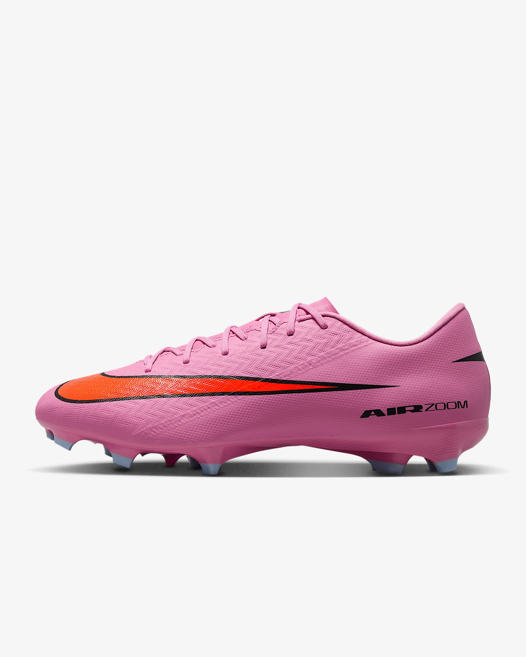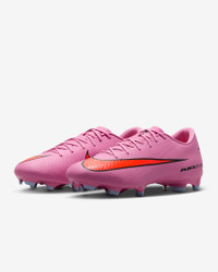 Looking to take your speed to the next level? We made these Academy cleats with an improved heel Air Zoom unit. It gives you the propulsive feel needed to break through the back line. The result is the most responsive Mercurial we've ever made, so you can dictate pace and tempo all match long. Product Details - For use on natural and synthetic surfaces - Cushioned sockliner - Shown: Magic Flamingo/Total Crimson/Black - Style: FQ1458-600 SIZE & FIT Contoured: designed for a contoured fit, enabng a barefoot boot-to-ball sensation and enhanced lockdown Snug fit; if you prefer a sghtly looser fit, we recommend ordering a half-size up