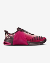 Whatever your "why" is for working out, the Metcon 9 makes it all worth it. We improved on the 8 with a larger Hyperlift plate and added a rubber rope wrap. This version has a flexible heel that collapses when you step in then snaps back into place. It helps make the shoe easy to put on and take off. More Benefits - Full rubber outsole provides durable traction for dynamic movements like cleans and walking lunges. - Breathable textile has a haptic print, which creates a 3-D effect that adds durability and texture, helping make it easier to keep your shoes clean. Also, it sports flexible, durable support in the toe area, so that when your toes splay when lifting heavy weights, it won’t feel restrictive. Product Details - Shown: Burgundy Crush/Rush Pink/Crimson Tint/Black - Style: FQ7221-600