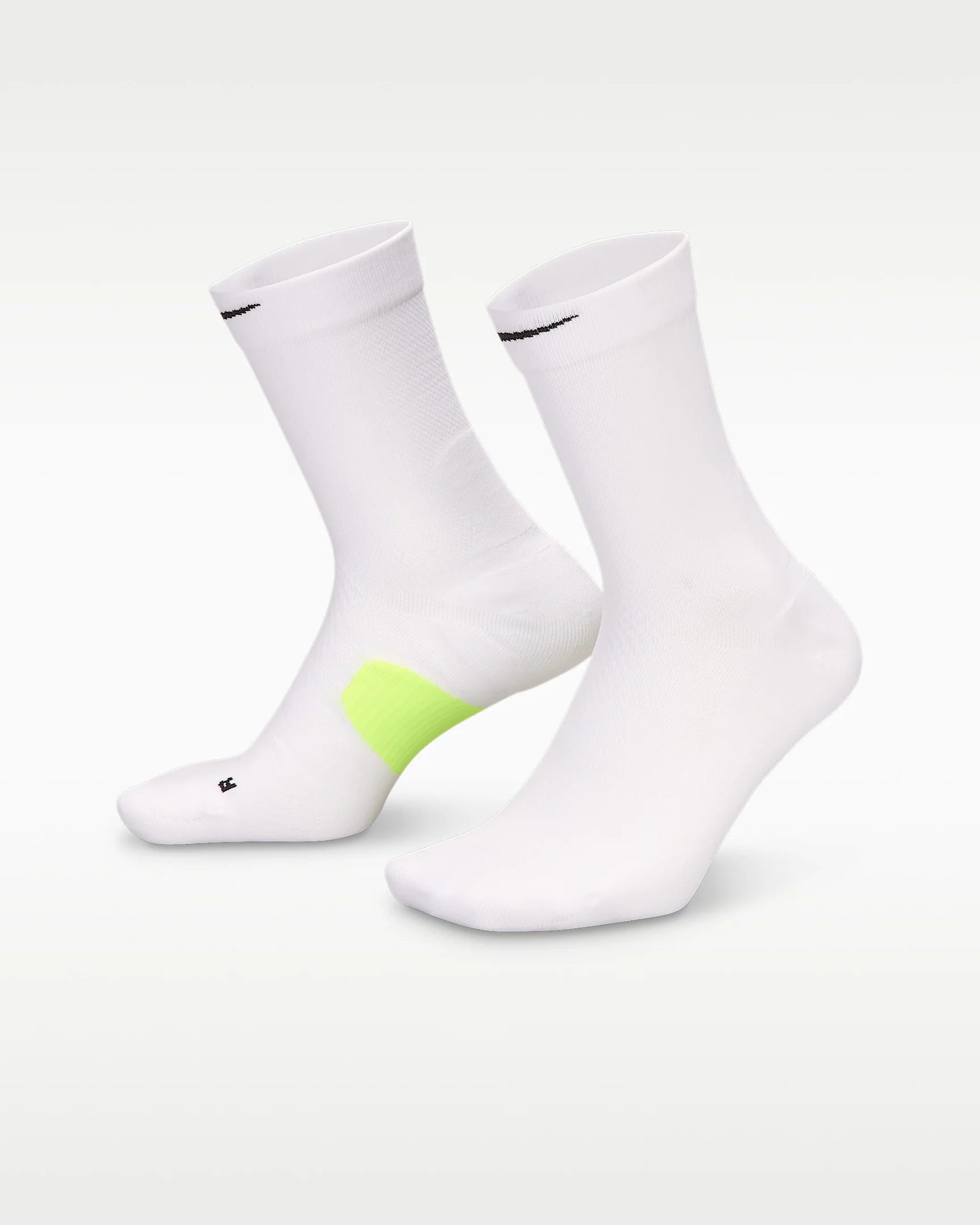 Introducing Nike's newest running socks. Designed to give you a locked-in fit, they feature sweat-wicking technology and strategically placed cushioning and support. This means you can forget the fit and focus on your miles. Product Details - 93% polyester/7% spandex - Machine wash - Imported - Shown: White/Volt/Black - Style: HV6924-100