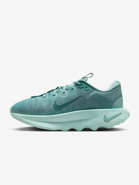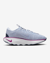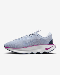 Designed for walking in ultimate comfort, the Nike Motiva provides our highest level of cushioning. A tall foam stack combines with our Comfortgroove innovation on the outsole to absorb the bumps along the way. And its exaggerated rocker helps propel you forward. Benefits - Super-high cushioning - Moderate stability - Moderate flexibility Product Details - Soft foam collar - Widened forefoot, arch and toe box - Durable outsole pattern for traction - Not intended for use as Personal Protective Equipment (PPE) - Shown: Football Grey/Hot Fuchsia/Armory Navy/Football Grey - Style: DV1238-008 SIZE & FIT Fits small; we recommend ordering a half size up
