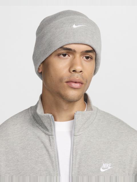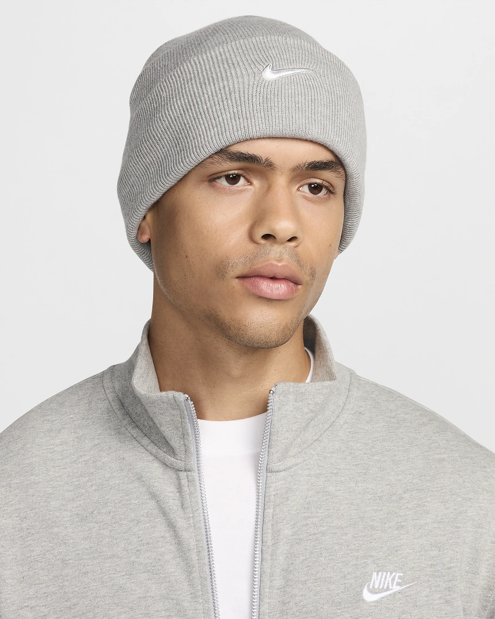 This classic beanie has a casual mid-depth design and supersoft knit construction. Benefits - Peak beanies all have a classic mid depth that’s versatile for everyday wear. - The tall cuff adds flexibility with style and warm coverage on cold days. Product Details - Embroidered Swoosh logo - 80-100% polyester, 0-20% nylon - Material percentages may vary. Check label for actual content. - Hand wash - Imported - Shown: Dark Grey Heather/White - Style: HF0187-063