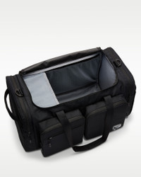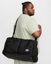 The Utility Duffel Bag lets you get straight to your sweat session with multiple pockets that help keep you organized. A change of clothes and sneakers fit into the main compartment, while external zipped pockets are ideal for quick access to any of your small essentials. Benefits - Adjustable shoulder strap and haul handles at the top and side give you comfortable carrying options. - Densely woven polyester provides heavyweight support. - Built-in ventilation lets your gear breathe. Product Details - 22" L x 11" W x 12" H - Body: 100% polyester. Lining: 76% polyester/24% ethylene vinyl acetate (EVA). - Spot clean - Imported - Shown: Black/Black/White - Style: FN4208-010