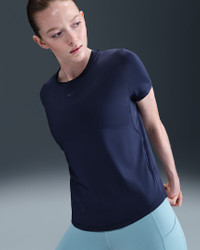 Up for a workout or down to chill, this Nike One Classic top is ready for whatever you are. Lightweight, silky-smooth fabric dries quickly and works for wherever your day takes you. A timeless, easy-fitting style and sweat-wicking tech help you feel confident, comfortable and dry from your morning stroll to your evening wind-down—and at all the stops in between. Product Details - 89% polyester/11% spandex - Machine wash - Imported - Reflective logo at center chest - Not intended for use as Personal Protective Equipment (PPE) - This product provides UVA and UVB protection from the sun only in the areas covered by the garment. To protect exposed areas, the use of good quality sunscreen is recommended. - Shown: Midnight Navy/White - Style: FN2798-410 SIZE & FIT Model is wearing size S and is 5′7″170cm Standard fit: easy and traditional