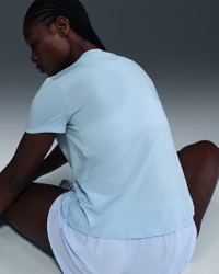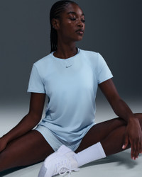 Up for a workout or down to chill, this Nike One Classic top is ready for whatever you are. Lightweight, silky-smooth fabric dries quickly and works for wherever your day takes you. A timeless, easy-fitting style and sweat-wicking tech help you feel confident, comfortable and dry from your morning stroll to your evening wind-down—and at all the stops in between. Product Details - 89% polyester/11% spandex - Machine wash - Imported - Reflective logo at center chest - Not intended for use as Personal Protective Equipment (PPE) - This product provides UVA and UVB protection from the sun only in the areas covered by the garment. To protect exposed areas, the use of good quality sunscreen is recommended. - Shown: Celestine Blue - Style: FN2798-441 SIZE & FIT Model is wearing size S and is 5′8″173cm Standard fit: easy and traditional