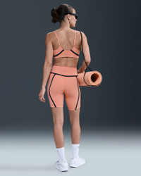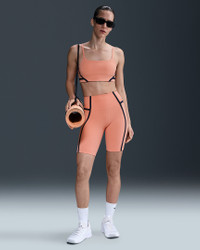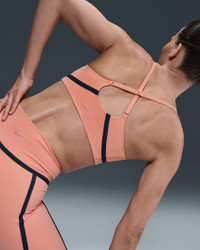 Nike One works for it all. This bra's convertible straps make it easy to wear under a variety of tops, while midweight, peachy-soft fabric stretches with you and dries quickly. Benefits - Nike Dri-FIT technology moves sweat away from your skin for quicker evaporation, helping you stay dry and comfortable. - Light support gives you a gentle hold with plenty of freedom. Product Details - Body: 80% polyester/20% spandex. Upper front lining: 88% polyester/12% spandex. Panels lining: 80% polyester/20% spandex. - Machine wash - Imported - Reflective Swoosh logo at center back - Not intended for use as Personal Protective Equipment (PPE) - Shown: Apricot Agate/Apricot Agate/Armory Navy/Black - Style: HF5366-844 SIZE & FIT Model is wearing size S Model height: 5′10″178cm Model bust: 34″86cm Tight fit: snug and form-fitting Light support: feels ke a soft hug with plenty of freedom