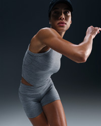 Up for a workout or down to chill, this Nike One Fitted tank top is ready for whatever you are. Midweight, peachy-soft fabric stretches with your every move and dries quickly. Slightly cropped and snug, it's ready to meet your favorite high-waisted leggings for a head-to-toe look that you can feel confident and comfortable in from your morning stroll to your evening wind-down—and at all the stops in between. More Benefits - Nike Dri-FIT technology moves sweat away from your skin for quicker evaporation, helping you stay dry and comfortable. - High neckline with racerback is designed to cover traditional sports bras. Product Details - 80% polyester/20% spandex - Machine wash - Imported - Reflective heat transfer Swoosh logo at center back - Not intended for use as Personal Protective Equipment (PPE) - Shown: Smoke Grey/Heather/Black - Style: FN2806-084 SIZE & FIT Model is wearing size S and is 5′9″175cm Tight fit: snug and form-fitting