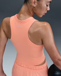 Up for a workout or down to chill, this Nike One Fitted tank top is ready for whatever you are. Midweight, peachy-soft fabric stretches with your every move and dries quickly. Slightly cropped and snug, it's ready to meet your favorite high-waisted leggings for a head-to-toe look that you can feel confident and comfortable in from your morning stroll to your evening wind-down—and at all the stops in between. More Benefits - Nike Dri-FIT technology moves sweat away from your skin for quicker evaporation, helping you stay dry and comfortable. - High neckline with racerback is designed to cover traditional sports bras. Product Details - 80% polyester/20% spandex - Machine wash - Imported - Reflective heat transfer Swoosh logo at center back - Not intended for use as Personal Protective Equipment (PPE) - Shown: Apricot Agate/Black - Style: FN2806-844 SIZE & FIT Model is wearing size S and is 5′9″175cm Tight fit: snug and form-fitting