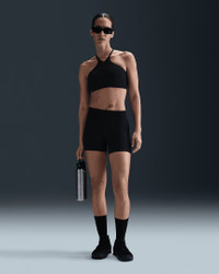 All-day comfort or low-impact workouts, this light-support bra is ready for whatever you are. Its midweight, peachy-soft fabric stretches with your every move and dries quickly. Benefits - Nike Dri-FIT technology moves sweat away from your skin for quicker evaporation, helping you stay dry and comfortable. - Two removable pads let you choose your coverage. - Adjustable straps let you dial in your perfect fit. - Keyhole design at front adds breathability and visual interest. Product Details - Reflective Swoosh logo at center back - Not intended for use as Personal Protective Equipment (PPE) - Body/Insets lining: 80% polyester/20% spandex. Lining: 84% polyester/16% spandex. Pad top/back fabric: 100% polyester. Pad: 100% polyurethane. - Machine wash - Imported - Shown: Black - Style: HJ3726-010 SIZE & FIT Model is wearing size S Model height: 5′10″178cm Model bust: 31″79cm Tight fit: snug and form-fitting Light support: feels ke a soft hug with plenty of freedom