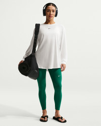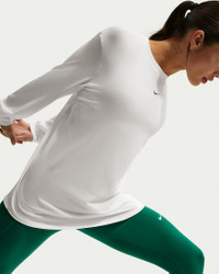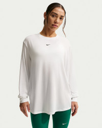 Up for a workout or down to chill, this Nike One Relaxed top is ready for whatever you are. Slightly textured, incredibly lightweight jersey fabric dries quickly and drapes you in comfort that goes with any activity. A loose, roomy fit and extended length help keep you covered and cozy from your morning stroll to your evening wind-down—and at all the stops in between. More Benefits - Nike Dri-FIT technology moves sweat away from your skin for quicker evaporation, helping you stay dry and comfortable. - Curved hem helps keep you covered as you move. Product Details - 81% polyester/13% cotton/6% spandex - Machine wash - Imported - Reflective logo at center back - Not intended for use as Personal Protective Equipment (PPE) - Shown: White/Black - Style: FN2817-101 SIZE & FIT Model is wearing size S and is 5′6″168cm Loose fit: roomy and relaxed