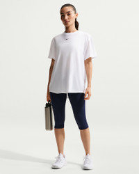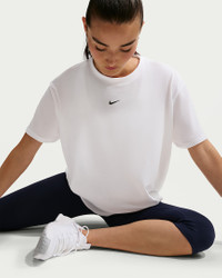 Up for a workout or down to chill, this Nike One Relaxed top is ready for whatever you are. Slightly textured, incredibly lightweight jersey fabric dries quickly and drapes you in comfort that goes with any activity. A loose, roomy fit and extended length help keep you covered and cozy from your morning stroll to your evening wind-down—and at all the stops in between. More Benefits - Nike Dri-FIT technology moves sweat away from your skin for quicker evaporation, helping you stay dry and comfortable. - Curved hem helps keep you covered as you move. Product Details - 81% polyester/13% cotton/6% spandex - Machine wash - Imported - Reflective logo at center back - Not intended for use as Personal Protective Equipment (PPE) - Shown: White/Black - Style: FN2814-101 SIZE & FIT Model is wearing size S and is 5'7"170cm Loose fit: roomy and relaxed Fits large; we recommend ordering a size down