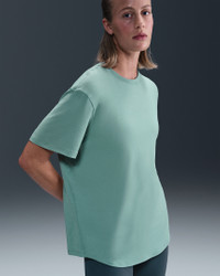 Up for a workout or down to chill, this Nike One Relaxed top is ready for whatever you are. Slightly textured, incredibly lightweight jersey fabric dries quickly and drapes you in comfort that goes with any activity. A loose, roomy fit and extended length help keep you covered and cozy from your morning stroll to your evening wind-down—and at all the stops in between. More Benefits - Nike Dri-FIT technology moves sweat away from your skin for quicker evaporation, helping you stay dry and comfortable. - Curved hem helps keep you covered as you move. Product Details - 81% polyester/13% cotton/6% spandex - Machine wash - Imported - Reflective logo at center back - Not intended for use as Personal Protective Equipment (PPE) - Shown: Cannon/White - Style: FN2814-017 SIZE & FIT Model is wearing size S and is 5′11″180cm Loose fit: roomy and relaxed Fits large; we recommend ordering a size down