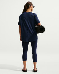 Up for a workout or down to chill, this Nike One Relaxed top is ready for whatever you are. Slightly textured, incredibly lightweight jersey fabric dries quickly and drapes you in comfort that goes with any activity. A loose, roomy fit and extended length help keep you covered and cozy from your morning stroll to your evening wind-down—and at all the stops in between. More Benefits - Nike Dri-FIT technology moves sweat away from your skin for quicker evaporation, helping you stay dry and comfortable. - Curved hem helps keep you covered as you move. Product Details - 81% polyester/13% cotton/6% spandex - Machine wash - Imported - Reflective logo at center back - Not intended for use as Personal Protective Equipment (PPE) - Shown: Midnight Navy/White - Style: FN2814-411 SIZE & FIT Model is wearing size S and is 5′6″168cm Loose fit: roomy and relaxed Fits large; we recommend ordering a size down