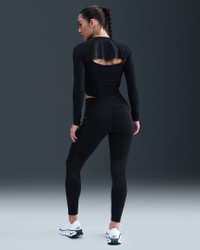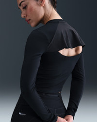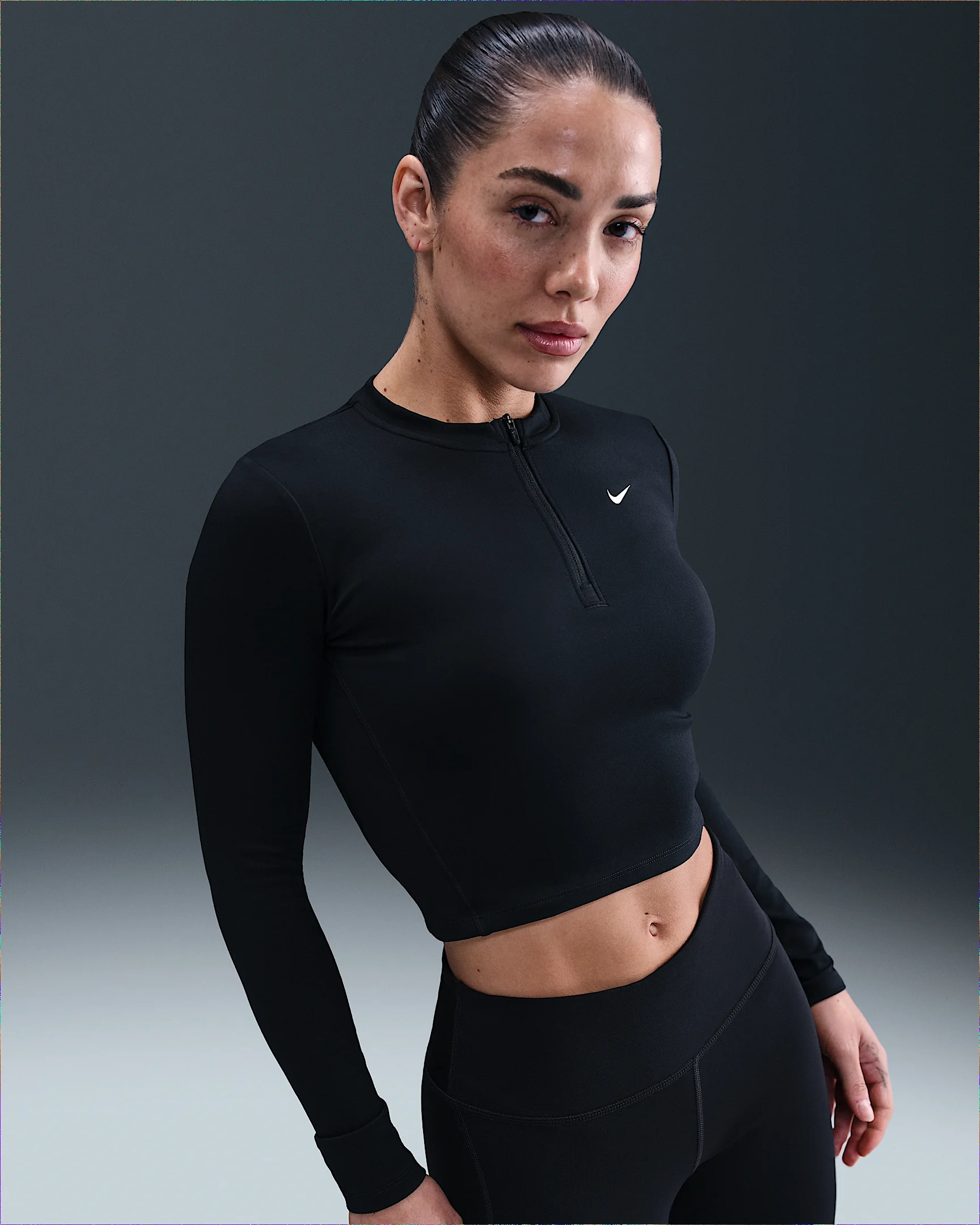 Nike One works for it all. Midweight and peachy soft, this mid layer stretches with you and dries quickly. An opening at the back enhances cooling in a high sweat area for comfort in every activity. Benefits - Nike Dri-FIT technology moves sweat away from your skin for quicker evaporation, helping you stay dry and comfortable. - 1/2-zip design allows for airflow. - Snug design for distraction-free moves. Product Details - Swoosh logo at chest - Woven panel at upper back - Body: 80% polyester/20% spandex. Panel: 85% polyester/15% spandex. - Machine wash - Imported - Shown: Black/White - Style: IM7048-010 SIZE & FIT Model is wearing size S and is 5′6″168cm Tight fit: snug and form-fitting