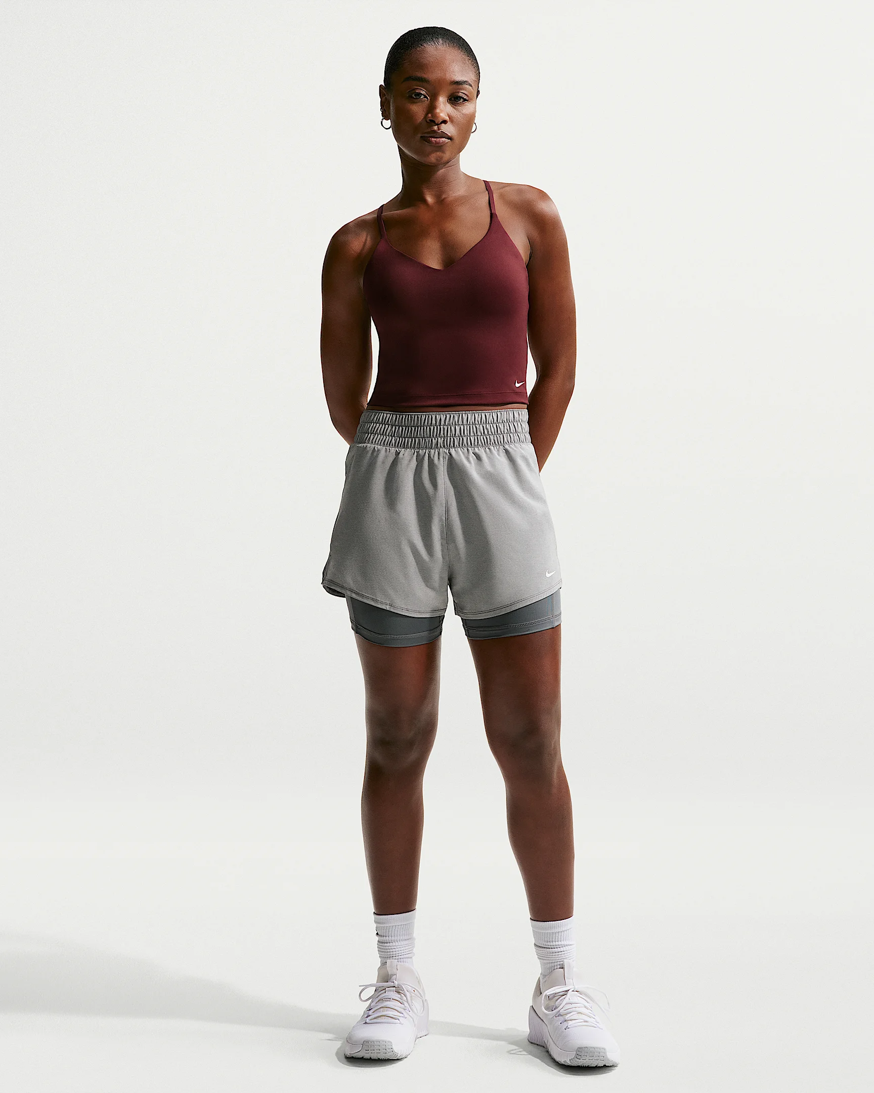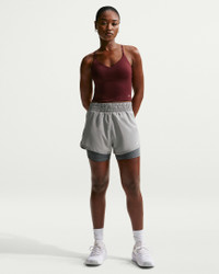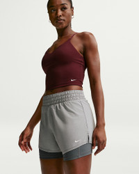 These shorts are the ones that are down for everything you do—from long walks to HIIT to running errands. Their silky-smooth, ultrasoft woven fabric is balanced with sweat-wicking tech so you have ultimate comfort while feeling dry as you work out. The snug inner layer helps prevent chaffing so you can push yourself with uncompromising coverage. Benefits - Nike Dri-FIT technology moves sweat away from your skin for quicker evaporation, helping you stay dry and comfortable. - Waistband and interior lining pockets let you keep small items close. Product Details - Body: 100% polyester. Tight: 88% polyester/12% spandex. Gusset Lining: 100% polyester. - High-rise elastic waistband - Machine wash - Imported - Not intended for use as Personal Protective Equipment (PPE) - Shown: Smoke Grey/Heather/White - Style: DX6016-085 SIZE & FIT Model is wearing size S and is 5′8″173cm Loose fit: roomy and relaxed