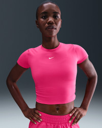 Nike One works for it all. Midweight and peachy soft, this top stretches with you and dries quickly—giving you comfort through every activity. Benefits - Nike Dri-FIT technology moves sweat away from your skin for quicker evaporation, helping you stay dry and comfortable. - Snug design for distraction-free moves. Product Details - Swoosh logo at chest - 80% polyester/20% spandex - Machine wash - Imported - Shown: Rush Pink/White - Style: IM7042-666 SIZE & FIT Model is wearing size S and is 5′11″180cm Tight fit: snug and form-fitting