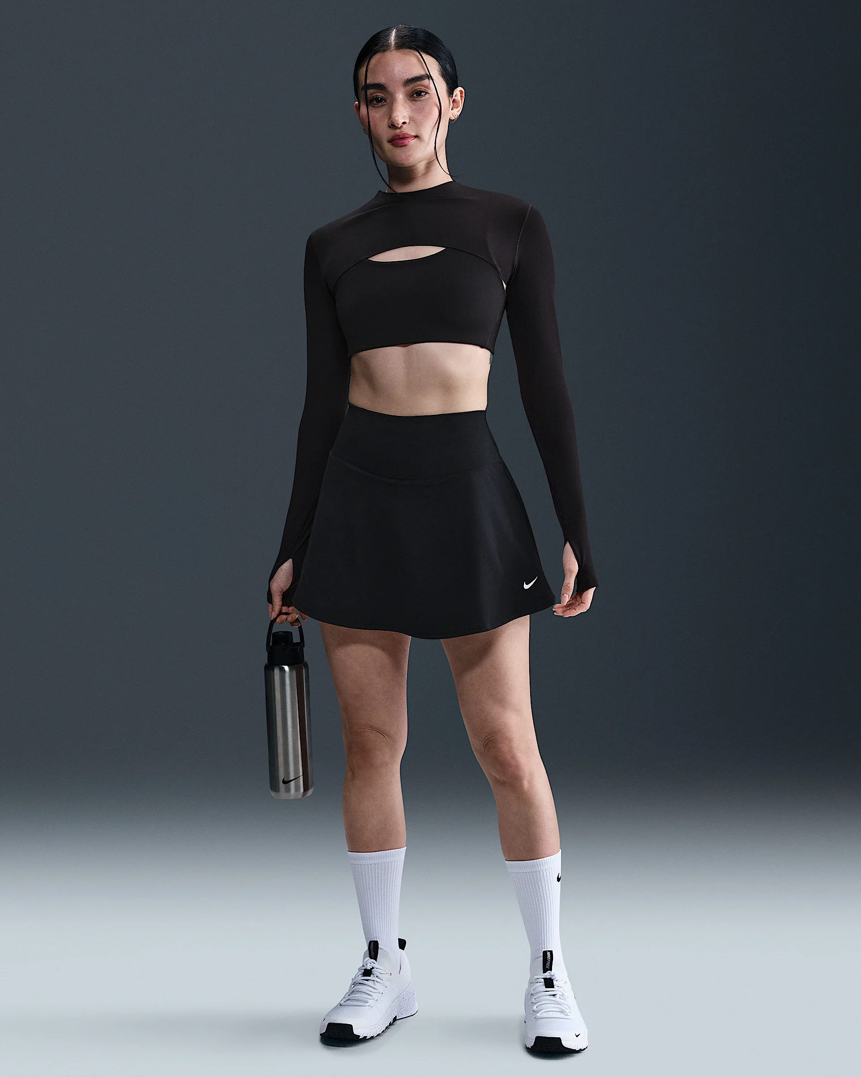 Nike One works for it all. Midweight and peachy soft, this skirt stretches with your every move and dries quickly. Built-in shorts give you extra coverage. Benefits - Nike Dri-FIT technology moves sweat away from your skin for quicker evaporation, helping you stay dry and comfortable. - Back waistband pocket fits most phones. Product Details - Swoosh logo on left thigh - Body/Tight/Waist lining: 80% polyester/20% spandex. Gusset lining: 100% polyester. - Machine wash - Imported - Shown: Black/White - Style: IH8614-010 SIZE & FIT Model is wearing size S and is 5′7″170cm Standard fit: easy and traditional