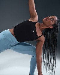 Nike One works for it all. Midweight and peachy soft, this tank top stretches with your every move and dries quickly. Its fitted design includes a shelf bra and adjustable straps for a comfortable layer of coverage. Benefits - Nike Dri-FIT technology moves sweat away from your skin for quicker evaporation, helping you stay dry and comfortable. - Ruching at side seams adds dimension. Product Details - Adjustable straps - Swoosh logo at center chest - Body:v80% polyester/20% spandex. Panels lining: 88% polyester/12% spandex. - Machine wash - Imported - Shown: Black/White - Style: IH8605-010 SIZE & FIT Model is wearing size S and is 5′8″173cm Tight fit: snug and form-fitting