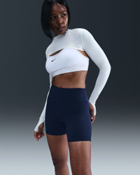 Up for a workout or down to chill, these biker shorts are the Ones that are ready for whatever you are. Their midweight, peachy-soft fabric stretches with your every move and dries quickly. Plus, a high waist is designed to meet your favorite cropped tops for a head-to-toe look that you can feel confident and comfortable in all day long. Product Details - Body: 80% polyester/20% spandex. Gusset lining: 100% polyester. - Machine wash - Imported - Not intended for use as Personal Protective Equipment (PPE) - Shown: Midnight Navy/White - Style: FN3211-410 SIZE & FIT Model is wearing size S and is 5′7″170cm Tight fit: snug and form-fitting