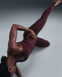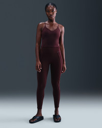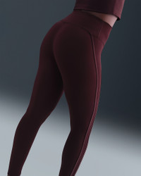 Nike One works for it all. Midweight and peachy soft, these leggings stretch with your every move and dry quickly. Nonsheer with a high waist, they help keep your butt covered no matter how deep you bend. Benefits - Nike Dri-FIT technology moves sweat away from your skin for quicker evaporation, helping you stay dry and comfortable. - Absence of a front seam helps keep the fabric from riding up for a smooth fit. - Back pocket fits most phones. Product Details - Swoosh logo - Body: 80% Polyester, 20% spandex; Waist Lining: 80% Polyester, 20% spandex; Gusset Lining: 100% Polyester - Machine Wash - Imported - Shown: Burgundy Crush/Burgundy Ash - Style: HV2478-652 SIZE & FIT Model is wearing size S and is 5′8″173cm Tight fit: snug and form-fitting Gentle support: feels ke a soft hug with plenty of freedom 78 length: hits at ankle High-Waisted: sits at or above your natural waist for more coverage
